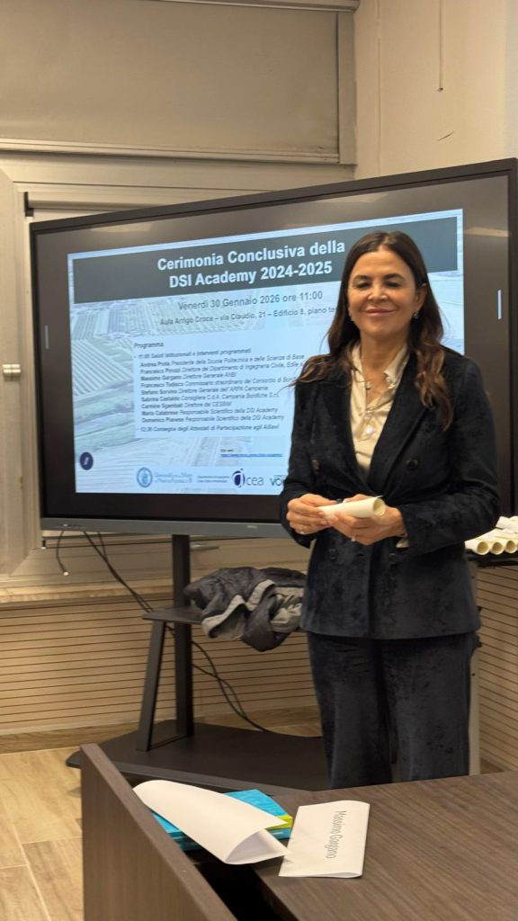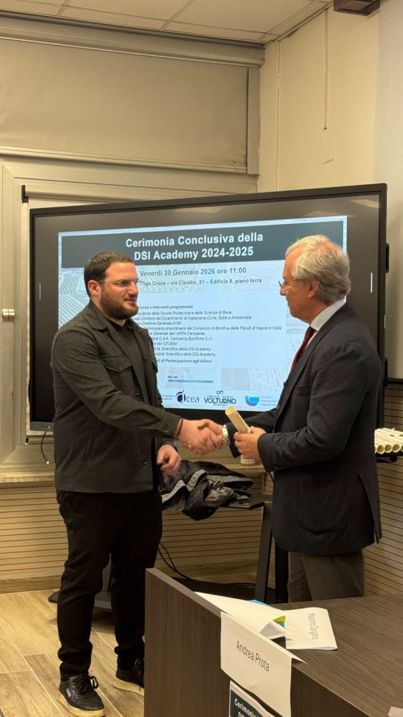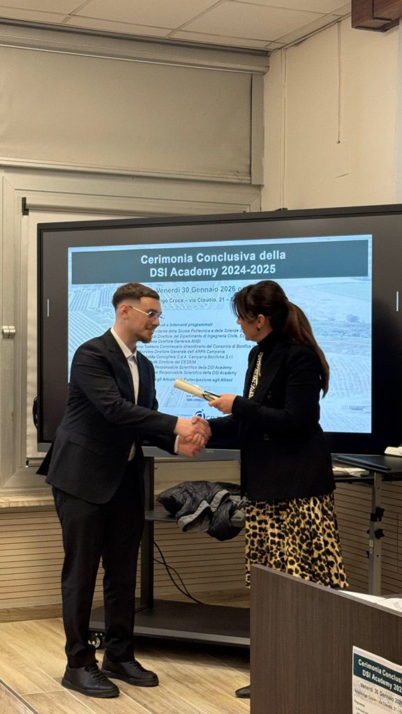Si è svolta venerdì 30 gennaio 2026, alle ore 11:00, presso l’Aula Arrigo Croce dell’Università degli Studi di Napoli Federico II, la cerimonia conclusiva della Drainage and Sustainable Irrigation – DSI Academy 2024–2025, importante iniziativa formativa nata dalla collaborazione tra il Dipartimento di Ingegneria Civile, Edile e Ambientale (DICEA), il CESBIM (Centro studi di Campania Bonifiche) e i Consorzi di Bonifica del Bacino Inferiore del Volturno, il Consorzio di Bonifica delle Paludi di Napoli e Volla e il Consorzio di Bonifica Comprensorio del Sarno.