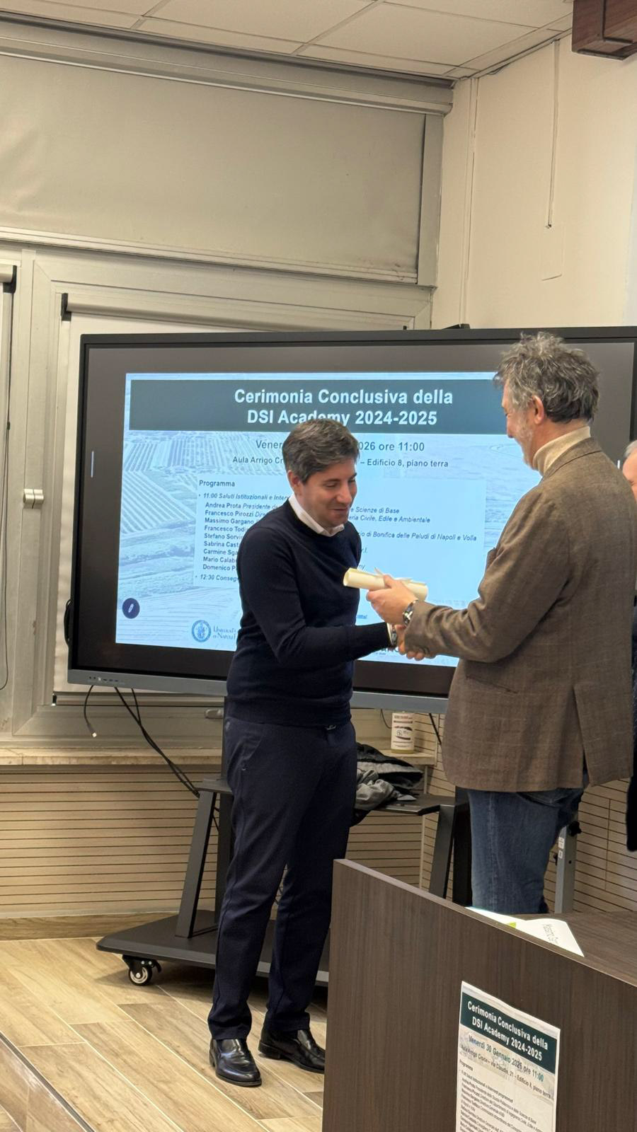 Si è svolta venerdì 30 gennaio 2026, alle ore 11:00, presso l’Aula Arrigo Croce dell’Università degli Studi di Napoli Federico II, la cerimonia conclusiva della Drainage and Sustainable Irrigation – DSI Academy 2024–2025, importante iniziativa formativa nata dalla collaborazione tra il Dipartimento di Ingegneria Civile, Edile e Ambientale (DICEA), il CESBIM (Centro studi di Campania Bonifiche) e i Consorzi di Bonifica del Bacino Inferiore del Volturno, il Consorzio di Bonifica delle Paludi di Napoli e Volla e il Consorzio di Bonifica Comprensorio del Sarno.